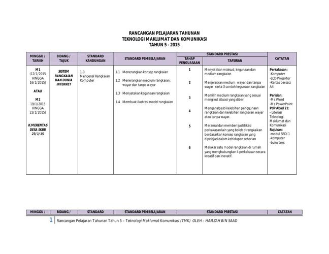 Rancangan Pengajaran Tahunan Teknologi Maklumat Dan Komunikasi Tahun 5 Rpt Tmk Tahun 5 2020 Cikgu Suffi Cs